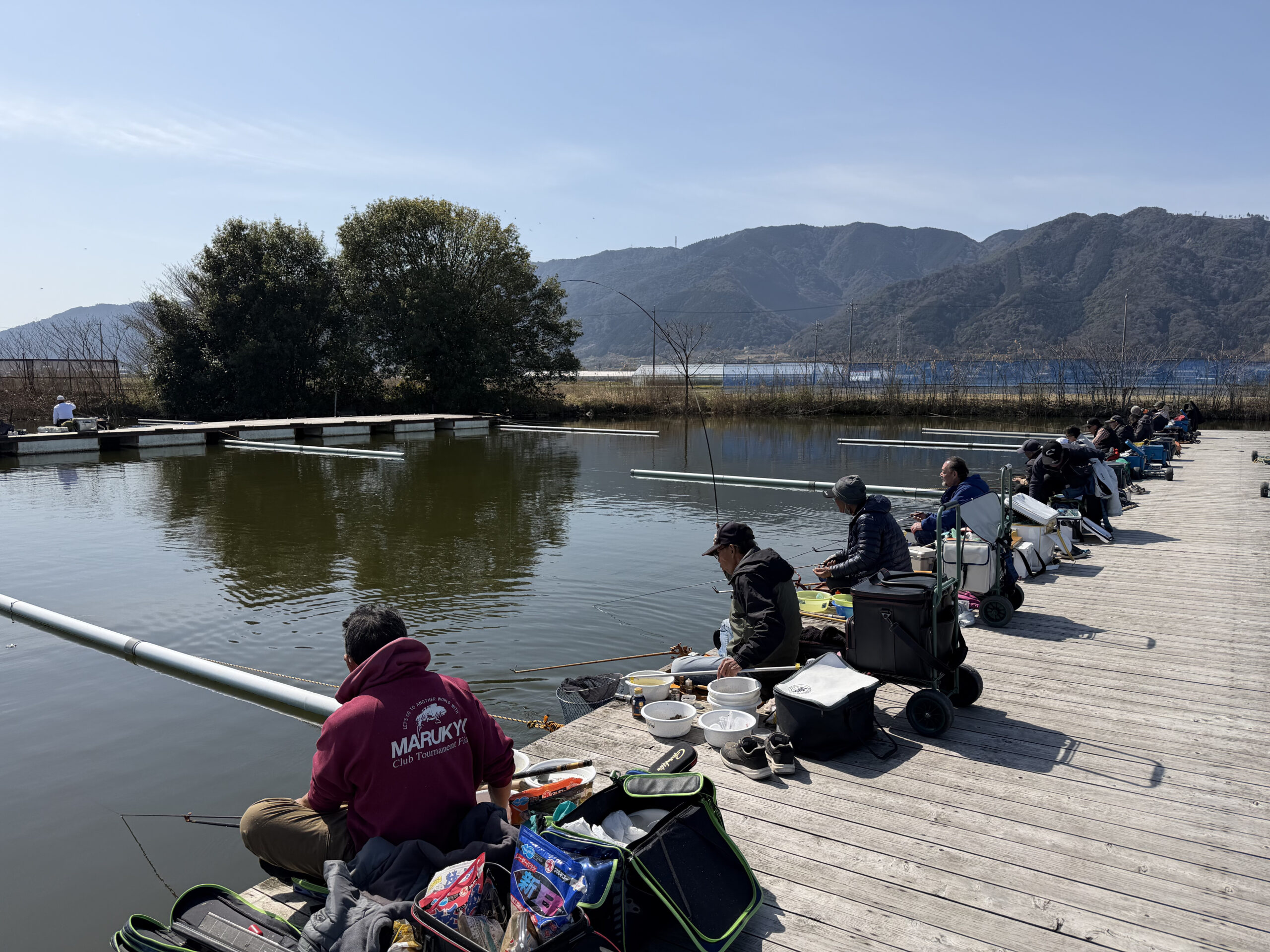 水深の深い手前端座席は早々に連続で竿が曲がりますが、中央座席でありながら関西から参加の鈴木千秋様が見事優勝されました。おめでとうございます。