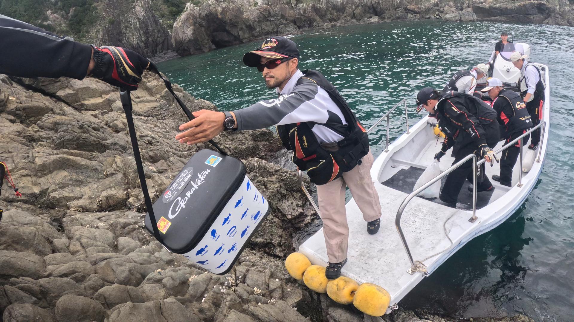 御座岬よりも沖はうねりのため使えず、湾内からその奥を使用していましたが、奥に入れば入るほど釣果が良かったのが印象的でした。