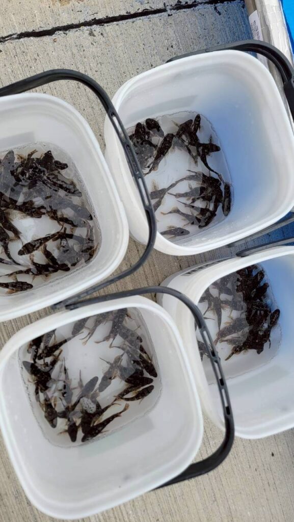 子どもたちを含む25名が稚魚放流に参加した