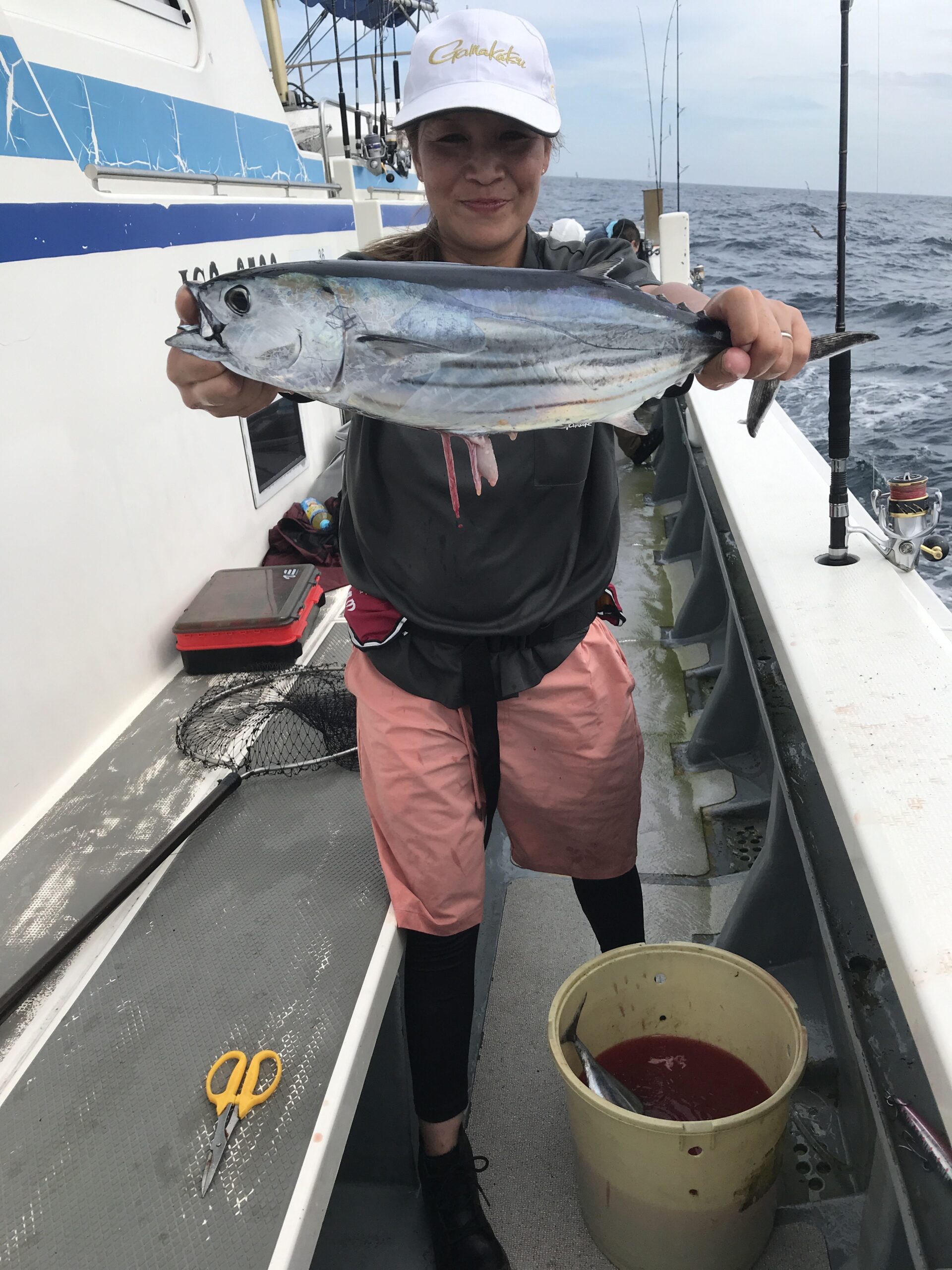 最初に一人がヒットすると、活性が上がり船中一斉にカツオが釣れ始めて皆さん大騒ぎに。