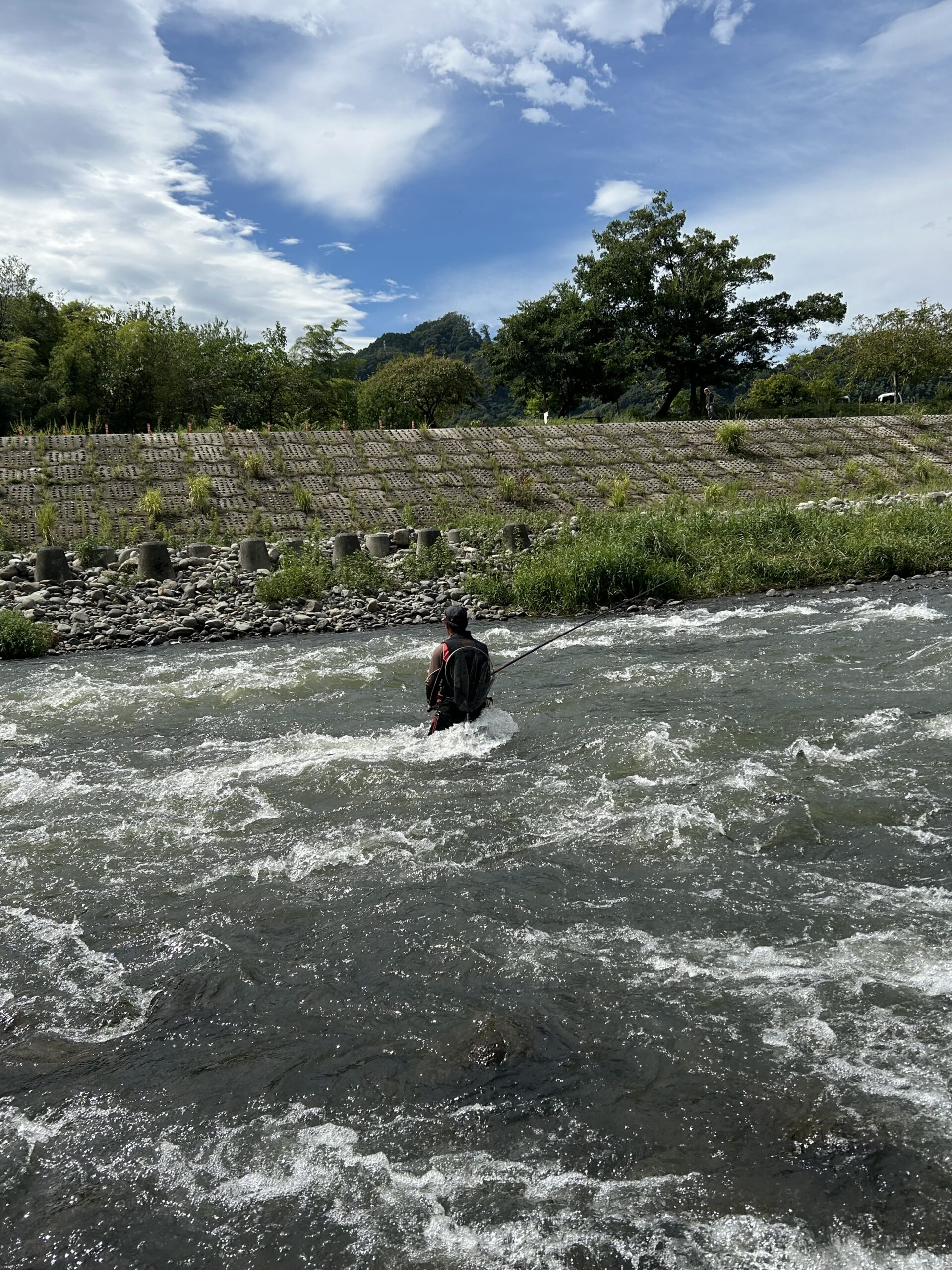 大鮎釣りということで、朝は瀬肩でオトリを数尾確保して流芯のオトリの入り辛い場所にねじ込み、良型を掛けました!