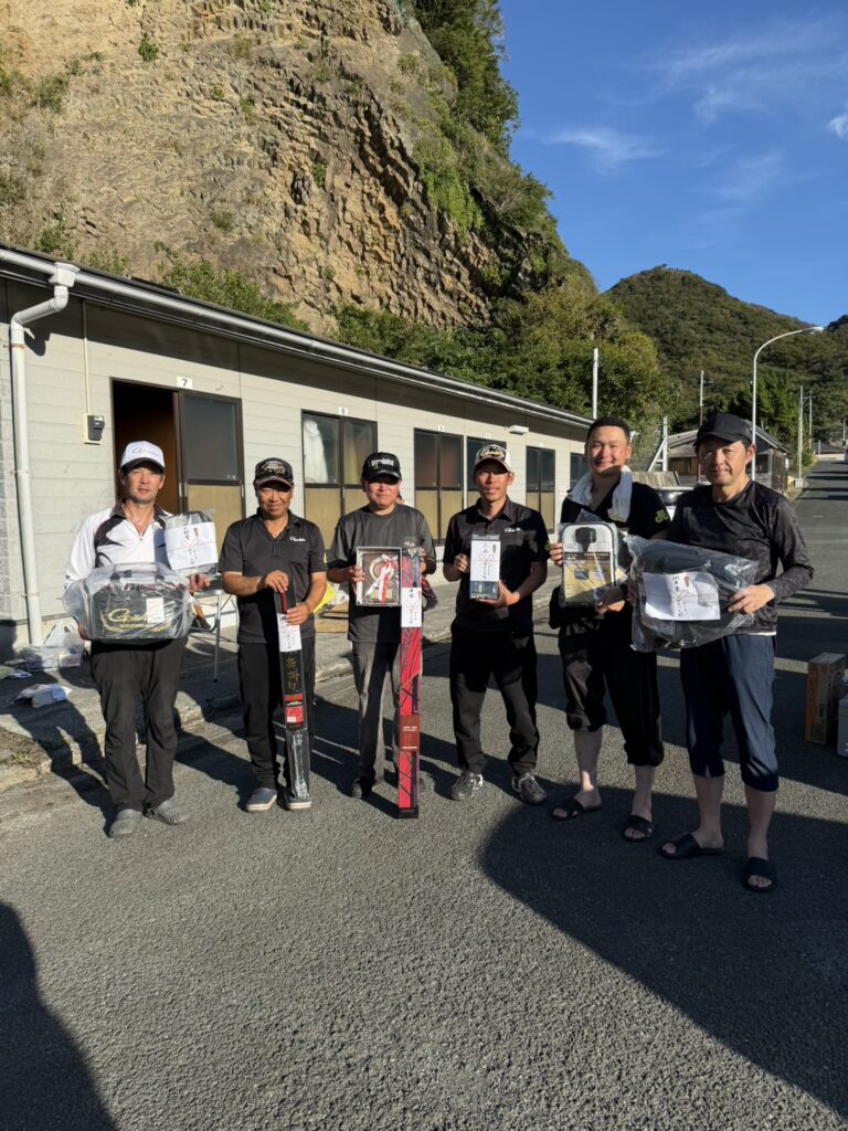 前半戦はイサキだらけ、後半戦は北側のハエ根際を狙い、際スレスレに仕掛けを潜り込ませると、ガツン!尾長かと思わせる元気な40オーバー口太を取り込み、4尾追加しました。北海道勤務で4年間離れていた私を暖かく迎えてくれたGFG会員の皆様、無事開催して頂いた役員の皆様と市丸様、海聖丸様、がまかつ様に感謝申し上げます。