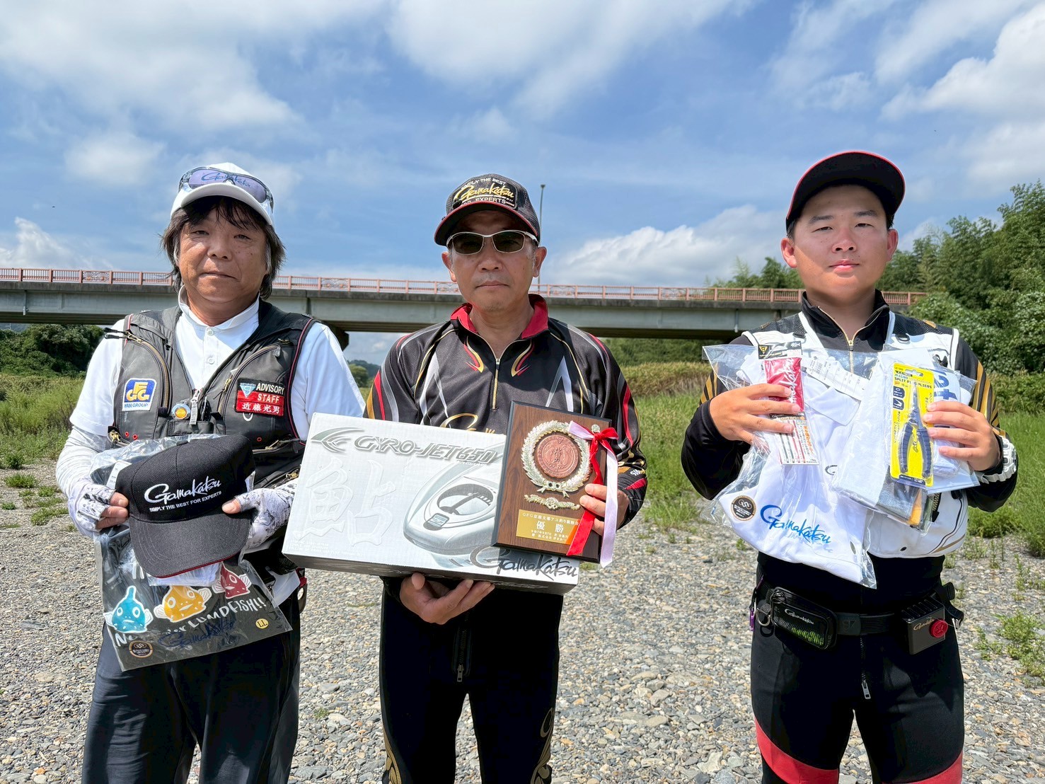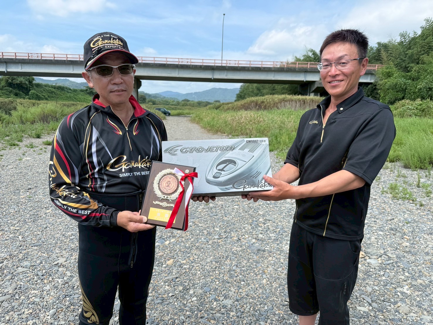 優勝は打越さん、広瀬橋の下で小鮎が群をなしている中から良型の鮎記録23.5㎝を釣り上げられました。
