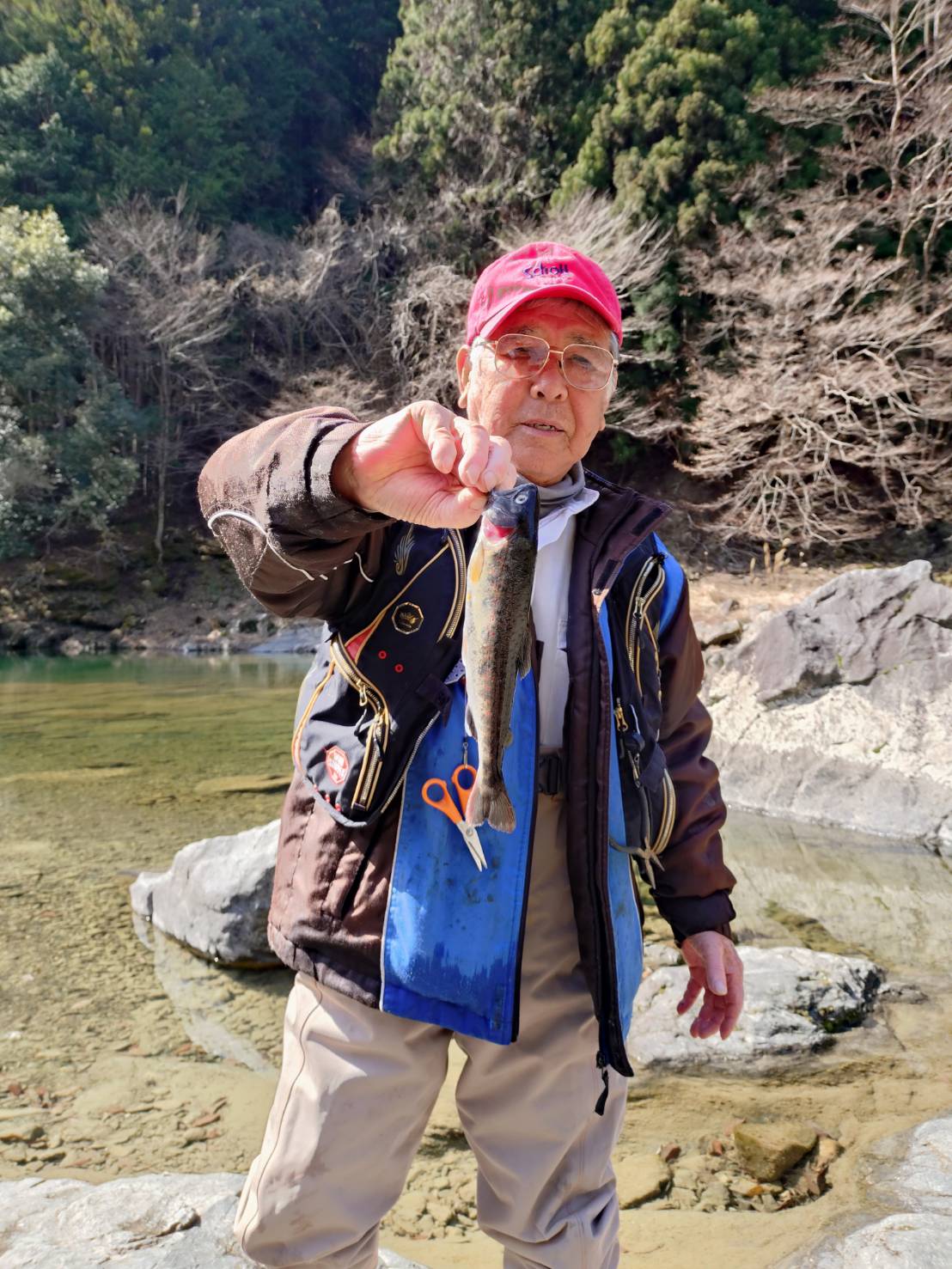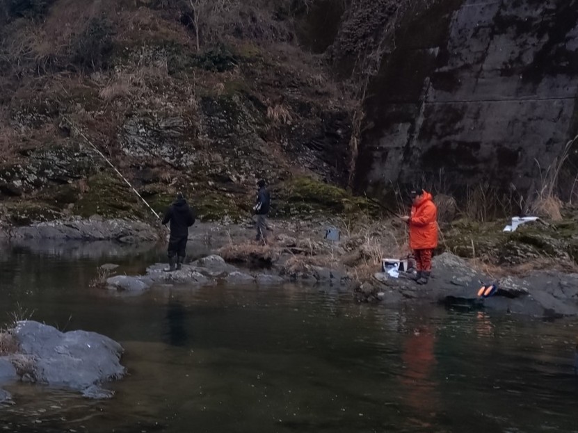 本当に解禁日か?と思ってしまう状況だったので、その場所を30分で見切り、上流へ移動するとトロ場でチラホラと竿が曲がっています。
