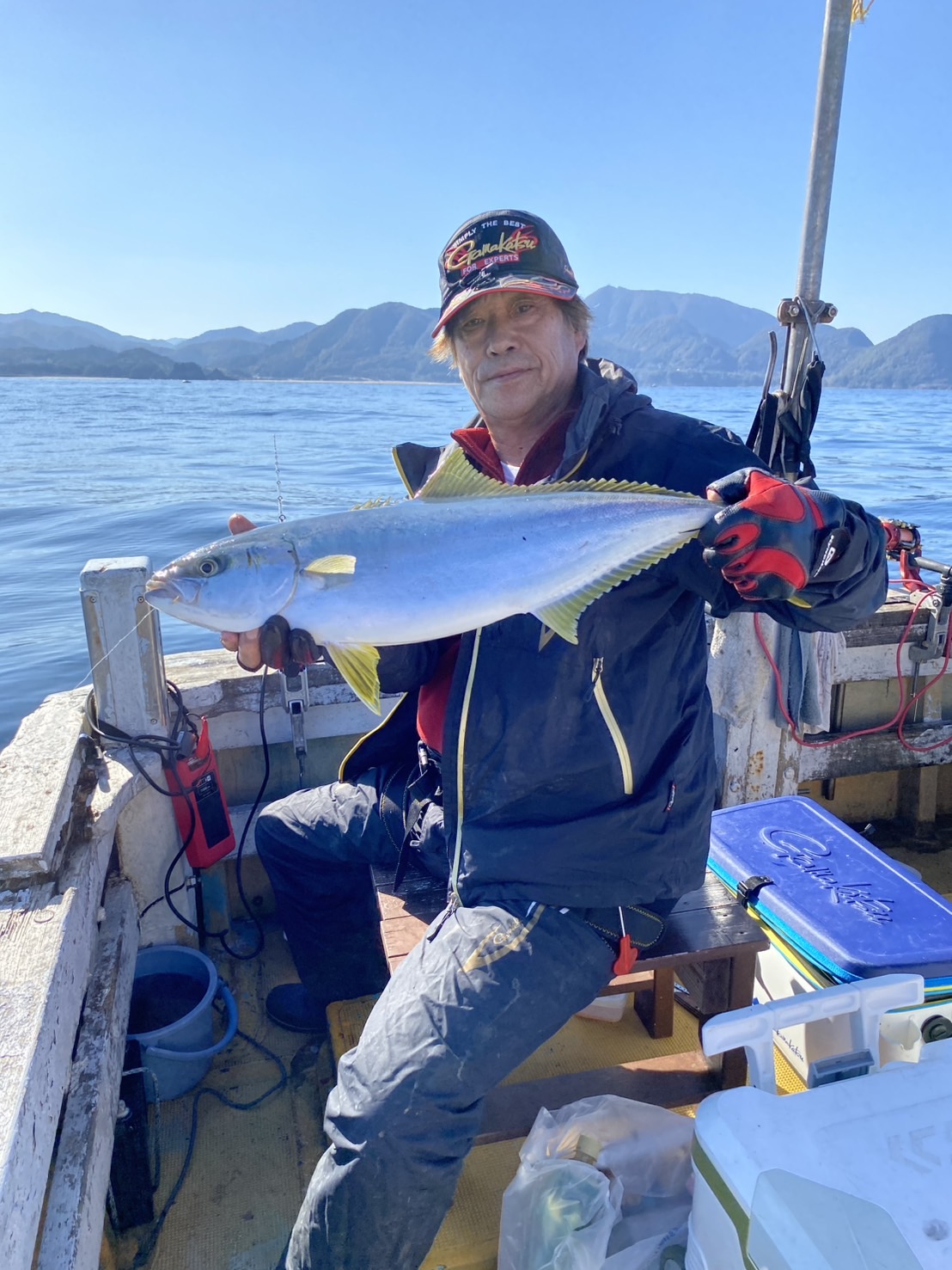 この日はあまり動かないサカ潮で苦戦が予想されましたが、私が乗船した「かちはる2」では時々75cm前後のヒラマサが強い引きで楽しませてくれました。
