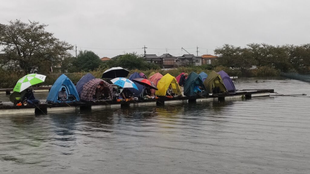 両面を使用して抽選にて釣座を決定しました。ほとんどの参加者がテントを設置されておられました。